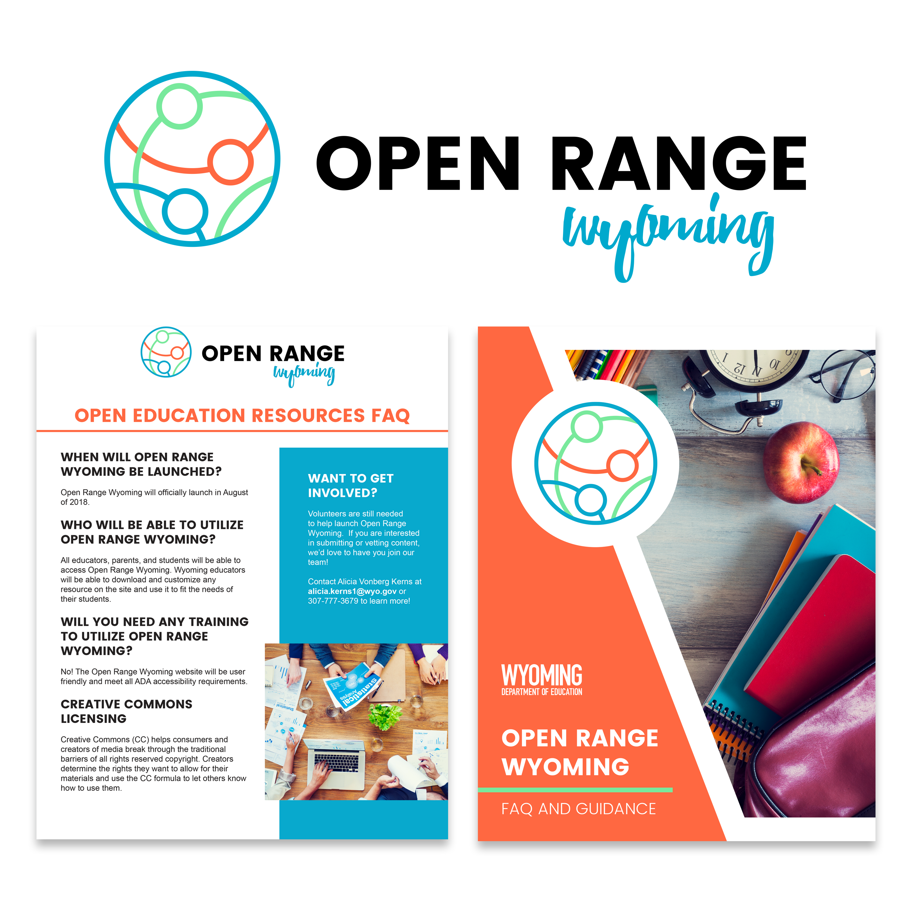 Logo and print design for Open Range Wyoming, the state-specific OER platform for Wyoming educators.